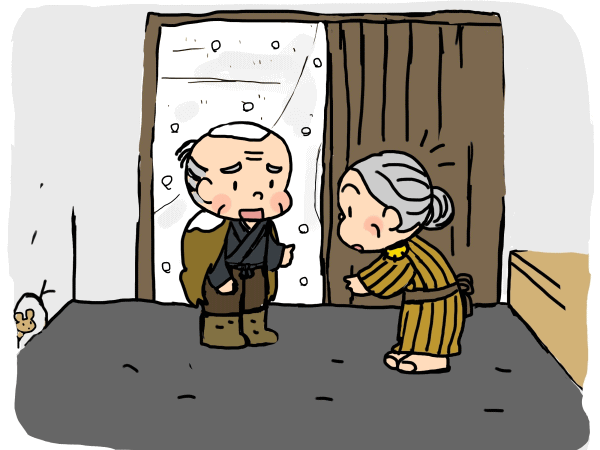 Chẳng bao lâu ông đã về đến nhà. Bà lão thấy ông bị tuyết bám đầy người rất đỗi ngạc nhiên.