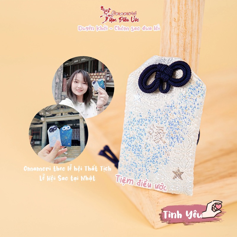 Ý nghĩa: #Duyên - cầu #tình_yêu sớm tới nhờ sự dẫn lối từ các vì tinh tú, mang omamori bên mình để sớm gặp được duyên lành và thành đôi