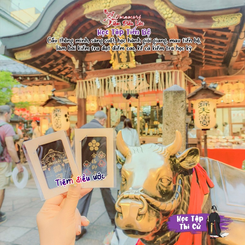Omamori dạng thẻ, kích thước cỡ thẻ ATM rất tiện để ốp điện thoại hoặc để ví tiền mang theo! Được làm ra từ Đền thờ cổ và nổi tiếng thờ Thần Học Vấn tại Shijo-dori