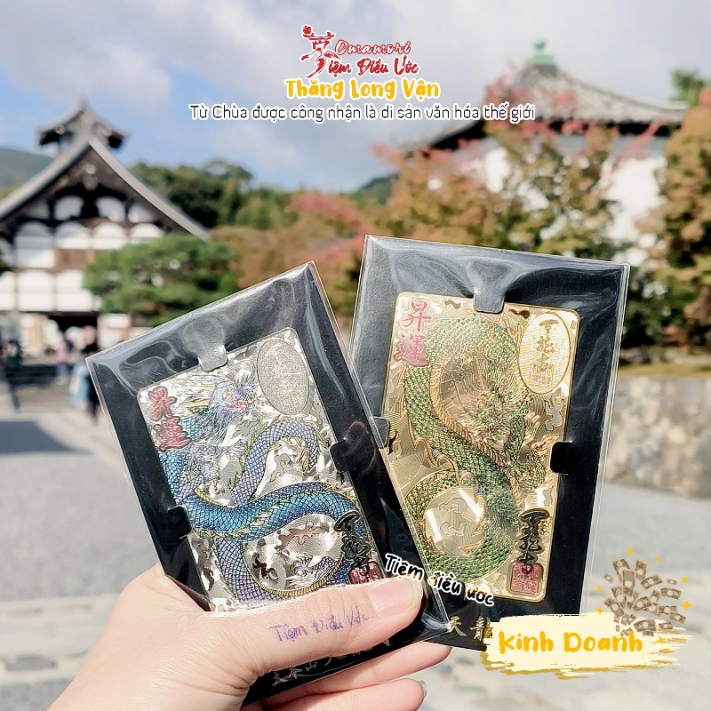 Đặc điểm và Công dụng: Thẻ Omamori thật này tiệm thỉnh có 2 màu là Vàng (Rồng Xanh Lá) và Bạc (Rồng xanh dương). Thẻ màu bạc sẽ có màu Hologram đẹp lắm, màu vàng cũng có nhưng ít dạ lên hơn, 2 thẻ này hình rồng khác nhau, mà hình mặt sau cũng khác luôn! Thẻ omamori thật này bằng kim loại, có khắc laze nhìn xuyên qua được ở hình đám mây, Thêm nữa Omamori thật có hình vị Tổ Sư góc trên bên trái, được khắc ảnh chìm và thay đổi theo góc nhìn (ảnh 3D) độc đáo nữa nhé! Thẻ này thích hợp để ví tiền và đẹp hơn nếu để trong ốp lưng điện thoại trong suốt, sang lắm nha