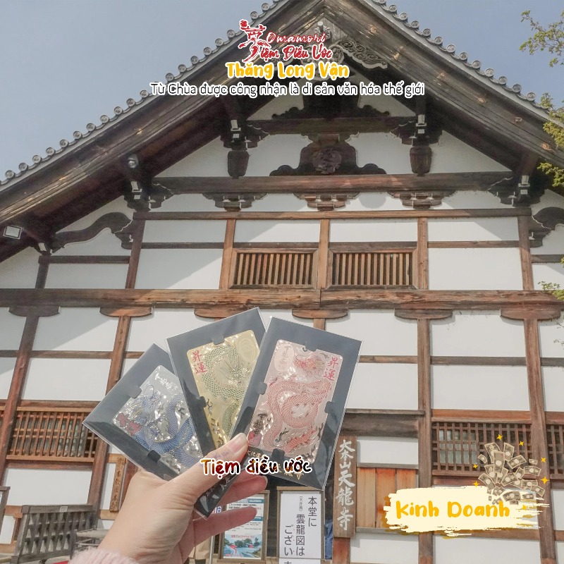 Xuất Xứ: Chùa tại Kyoto, #Nhật_Bản, là Chùa chính của dòng Tenryū-ji thuộc giáo phát Rinzai Thiền Tông, tọa lạc tại Susukinobaba-chō, Nhật Bản. Ngôi chùa được lập bởi Ashikaga Takauji vào năm 1339, chủ yếu thờ Đức Phật Thích Ca Mâu Ni, và thiền sư Musō Soseki. Chùa này nổi tiếng lắm nghen, nơi đây có khu vườn rất lớn, đã được công nhận là di sản văn hóa Thiền Tông cũng là di sản văn hóa thế giới ạ. Trong Chùa có thờ Thần Rồng và đức Tổ Sư Đạt Ma (#Daruma) nữa!