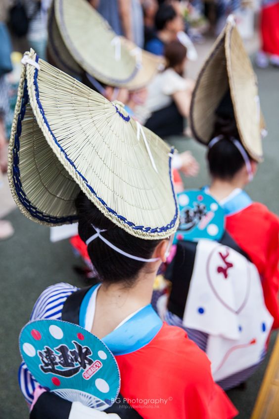 Trang phục của các nhóm nhảy không chỉ được thiết kế cầu kỳ, đẹp mắt mà còn rất đậm chất Nhật Bản. Nam vũ công thường mặc những bộ yukata nửa người có thể hiểu yukata là một loại kimono đơn giản, đầu quấn khăn, chân đi tất trắng, tay cầm quạt hoặc một lồng đèn nhỏ. Còn trang phục của các nữ vũ công thường là những bộ yukata dài, đầu đội nón, chân đi guốc geta – một loại guốc gỗ của Nhật có 2 đế ngang bên dưới rất khó di chuyển. Loại yukata của các nữ vũ công này khác với những bộ yukata thông thường, có thắt lưng nhỏ hơn để thuận tiện hơn khi múa.