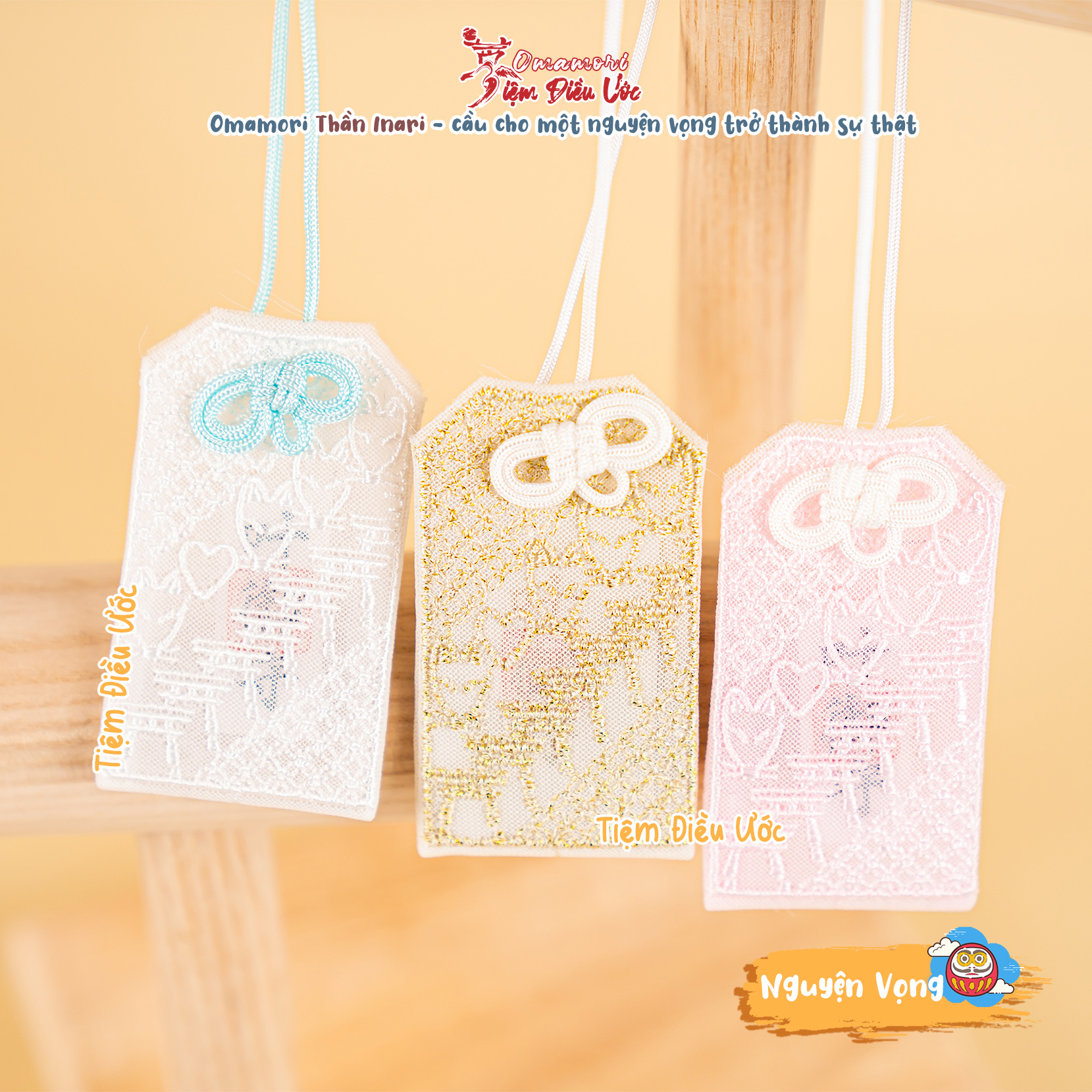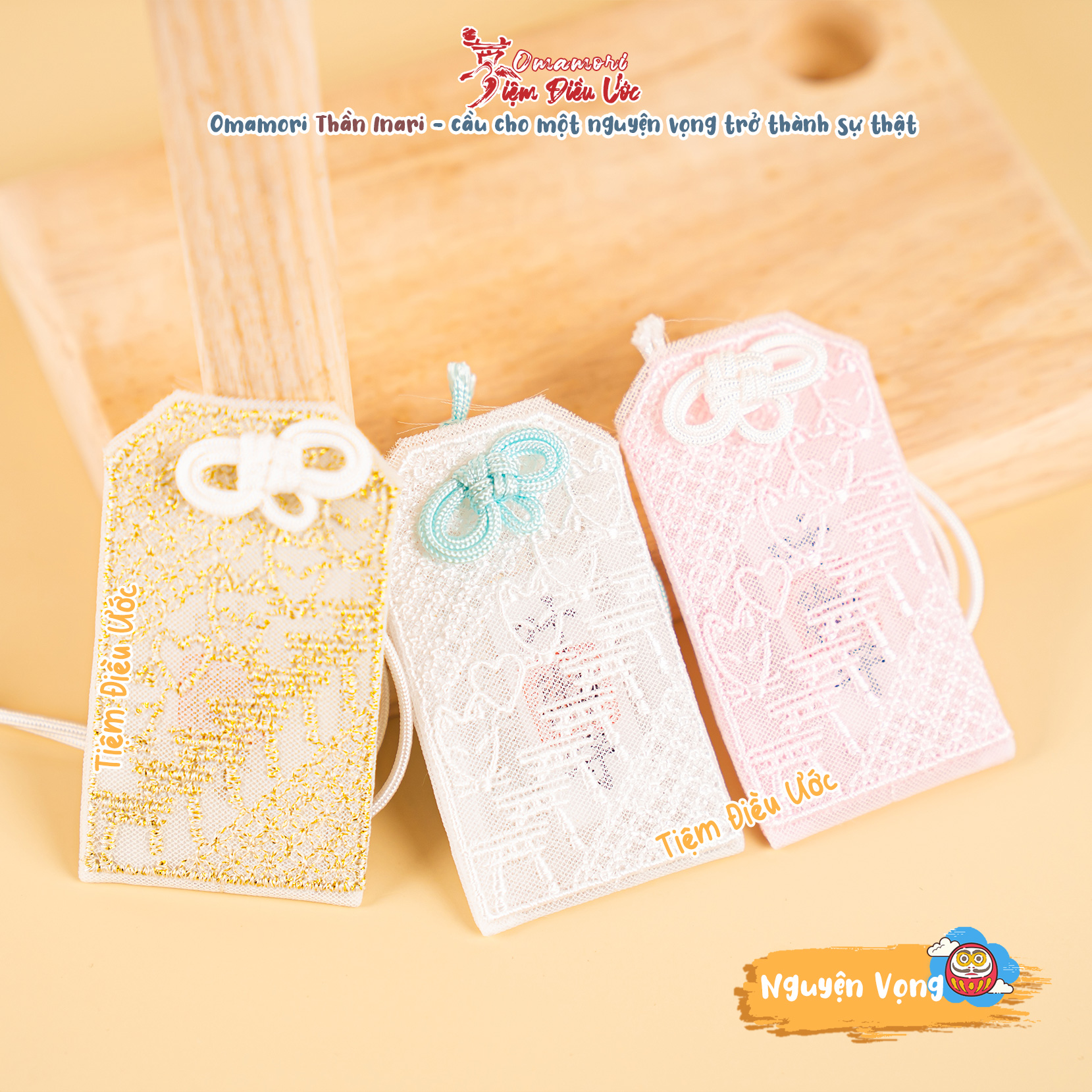 Tiệm Điều Ước tự hào là nơi có nhiều mẫu Omamori độc lạ và đa dạng nhất Việt Nam, Omamori được thỉnh từ Đền/Chùa nổi tiếng ở nhiều nơi của Nhật Bản.