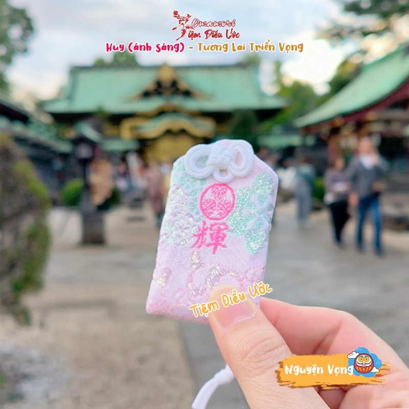 Ý nghĩa: cầu #tương_lai triển vọng, chữ trên #omamori là #Huy - theo hán Việt nghĩa là ánh sáng, là omamori dẫn đường cho bạn. Màu hồng phấn xinh lắm ạ
