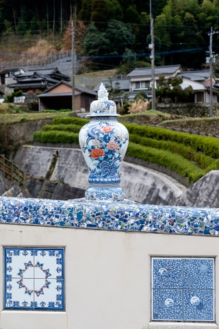 Ở trung tâm làng có Công viên Nabeshima, nơi trưng bày các tác phẩm gốm nổi tiếng và giới thiệu lịch sử của “ngôi làng bí mật”. Trên cầu, những chiếc lan can được trang trí bằng gốm sứ trắng xanh, còn đèn đường cũng mang hình dáng của những lò nung thu nhỏ – khiến cả ngôi làng tựa như một bảo tàng gốm sống động ngoài trời.