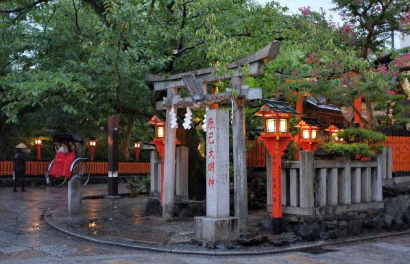 Sau một buổi dạo chơi ỏa Shirakawa nổi tiếng, các bạn có thể dạo bộ qua phố Shinbashi vào buổi tối ghé, một góc phố cổ tĩnh lặng của Kyoto. Ngay tại nơi này, bạn sẽ bắt gặp ngôi đền nhỏ Tatsumi Daimyo-jin, một biểu tượng linh thiêng được coi trọng bởi những nghệ nhân Geisha và Maiko. Đây là nơi họ tìm đến để cầu may mắn và nhận được chúc phúc cho việc phát triển kỹ năng nghệ thuật của mình.