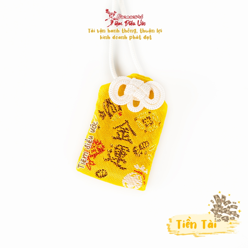 #Omamori màu vàng với nhiều hoa văn tài lộc