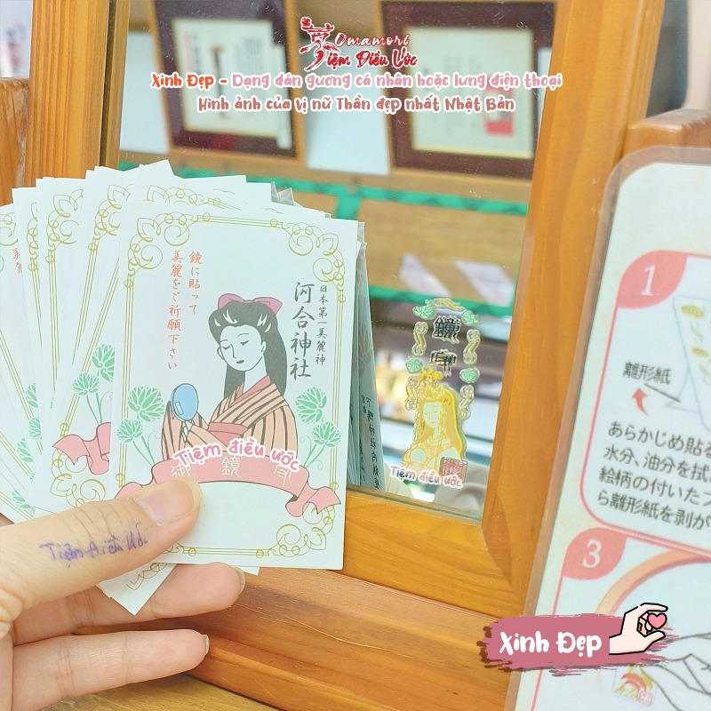 Cái đặc biệt của #Omamori này là dùng để dán gương nhé, ảnh này Tiệm chụp lại miếng gương ở Đền luôn nà! Nhìn sang lắm chớ bộ. Ấy vậy mà có khách nhà tui dán lên ... điện thoại luôn @@! vì bạn ấy bảo hay soi gương trên mặt sau điện thoại
