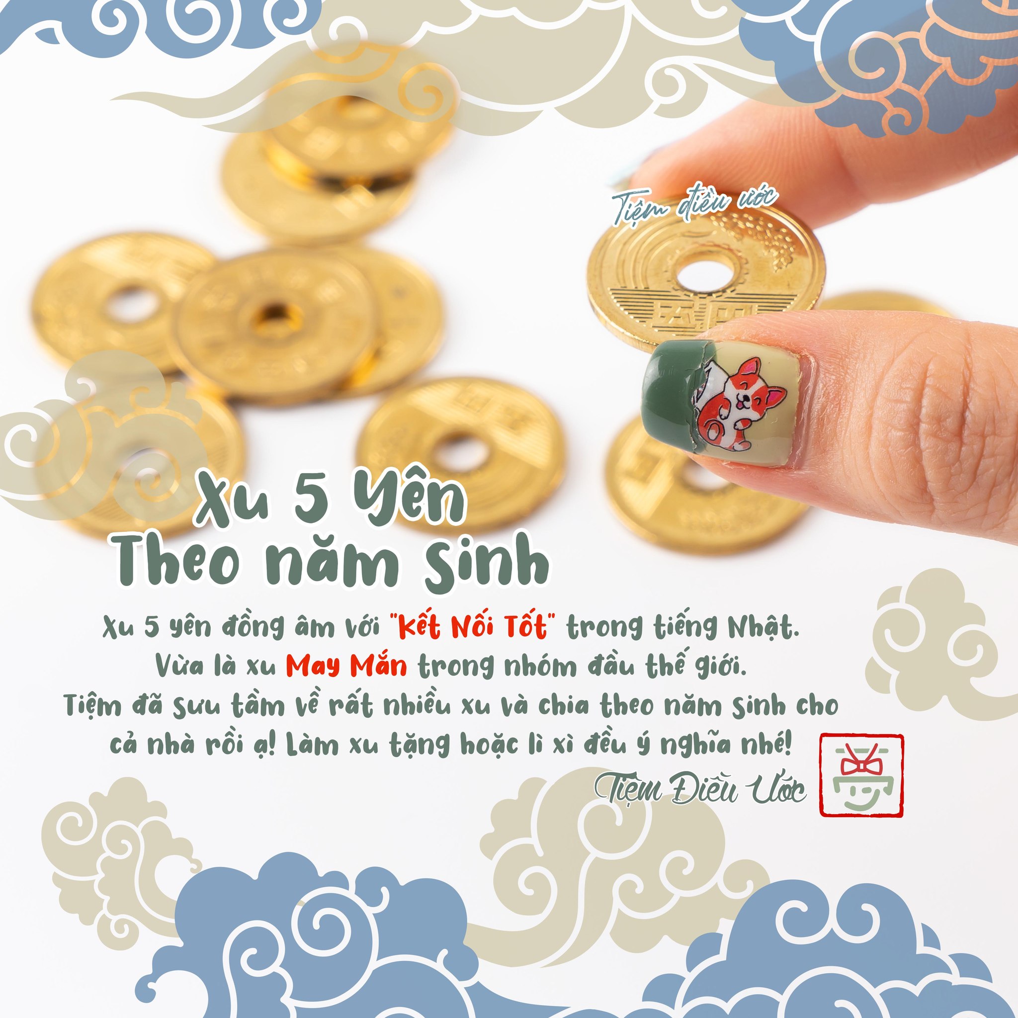 Ý Nghĩa: Cầu may mắn - Kết nối tốt - Là top những #đồng_xu may mắn trên thế giới, có lời đồn là tháng lương đầu tiên người Nhật hay để lại ví 1 đồng 5yên để cầu may mắn và có kết nối tốt. 5yên cũng là từ đồng âm với "kết nối tốt" trong tiếng Nhật nữa ạ! Xu tiệm đã phân chia theo năm sinh cho ý nghĩa, các xu đều mới tinh nên cả nhà yên tâm nhé! Đem về Nhật vẫn dùng được bình thường nha cả nhà!